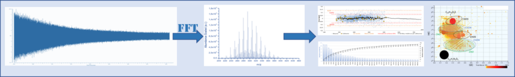 Les deux dernières décennies ont conduit à démocratiser en France, l’accès à la spectrométrie de masse à transformée de Fourier (FTMS) à de nombreux chercheurs en se dotant de ce type d’équipements ou au travers de projets réalisés grâce à l’infrastructure de recherche Infranalytics (FR2054) de l’INC. Les instruments à résonnance cyclotronique des ions (FT-ICR) et Orbitrap permettent d’atteindre une très haute résolution en masse (105 à 106) et une précision de mesure en masse inégalée (erreur< 1 ppm). Les couplages aux différentes techniques séparatives et les différentes sources d’ionisation qui lui sont associées, font de la FT-MS, un outil incomparable pour l’étude qualitative et quantitative de milieux complexes associant plusieurs centaines à plusieurs milliers de petites molécules (50 à 1 500 Da) dans les domaines de l’énergie, de l’environnement, de la biologie ou encore de l’archéologie et de la cosmologie. Néanmoins, les techniques FTMS nécessitent encore une forte expertise tant dans la phase d’acquisition des données que dans celle de leur exploitation.