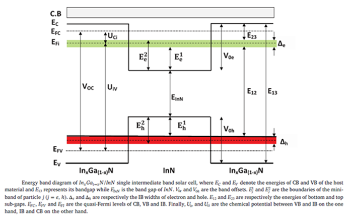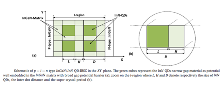 Despite this potential, the performance of IBSCs remains strongly dependent on the optimization of several design parameters, including the size, geometry, and inter-dot spacing of QDs, as well as the selection of suitable semiconductor materials. The position and width of the intermediate band induced by QD-related quantized states are typically determined by solving the Schrödinger equation within the effective mass approximation. These parameters critically affect key photovoltaic characteristics—such as open-circuit voltage, short-circuit current density, and overall conversion efficiency—highlighting the necessity for rigorous modelling and experimental validation. Within the framework of the MOPGA (Make Our Planet Great Again) 2025 research project, particular effort will be devoted to optimizing these parameters in order to enhance the operational performance of IBSCs. The project also aims to investigate novel semiconductor materials and to develop a functional prototype, thereby contributing to the advancement of next-generation high-efficiency photovoltaic technologies.